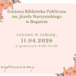 Dnia 30.03.2026 roku biblioteka i filie czynne do godziny 13:30.