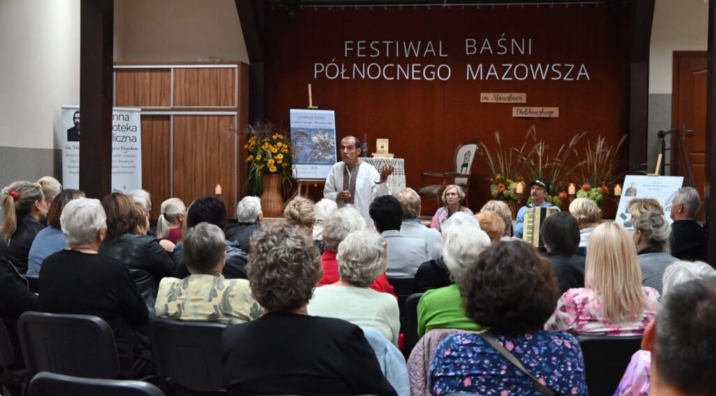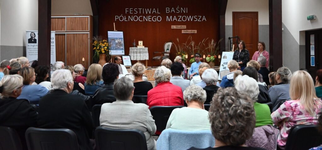 W czwartek, 18 września 2025 za sprawą Festiwalu Baśni Północnego Mazowsza im. Stanisława Chełchowskiego, organizowanego przez LGD Północne Mazowsze, naszą bibliotekę wypełnił klimat dawnych, długich wieczorów i opowieści snutych przy rodzinnym stole. Spotkanie otworzyła Prezes Zarządu LGD, Pani Anna Kienik.