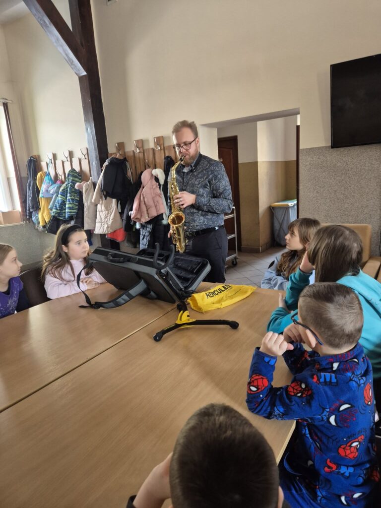 🎺 Czwartego dnia gościliśmy kapelmistrza Orkiestry Dętej w Bogatem, który zaprezentował instrumenty dęte, a zajęcia zwieńczyły warsztaty kreatywnego pisania.