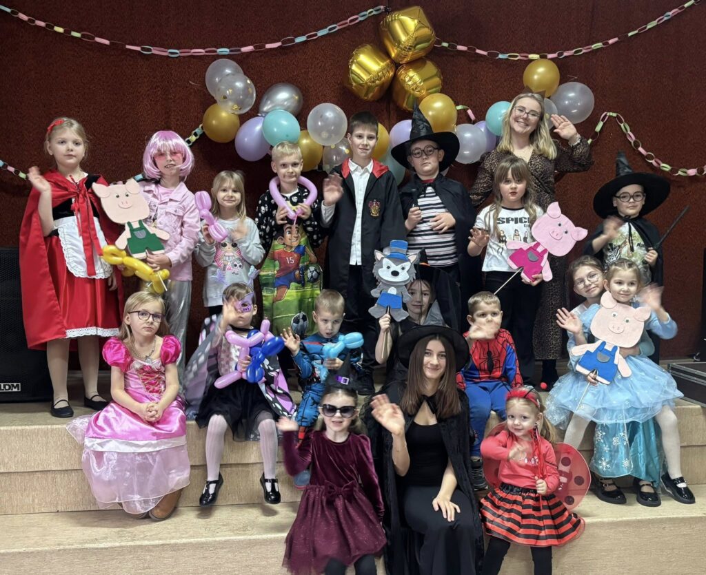 🎭 Ostatnie dni ferii zwieńczył karnawałowy bal kostiumowy z teatrzykiem kukiełkowym „Trzy Świnki”, wspólną zabawą taneczną oraz finałem przygotowanym dzięki zaangażowaniu uczestników i wolontariuszy.